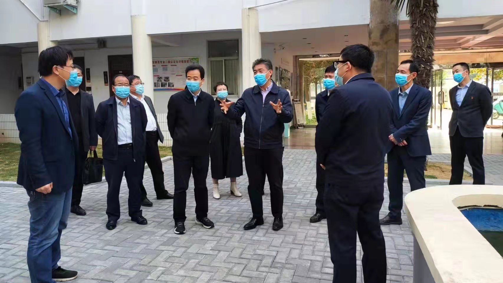 4月16日下午,校领导司林胜、陈向炜、吴金山、郭文佳、张箭一行来到睢阳校区走访慰问驻校师生,了解封闭校园管理期间驻校师生生活及学习状况。党政办、宣传部、学生处、后勤服务中心负责人陪同。