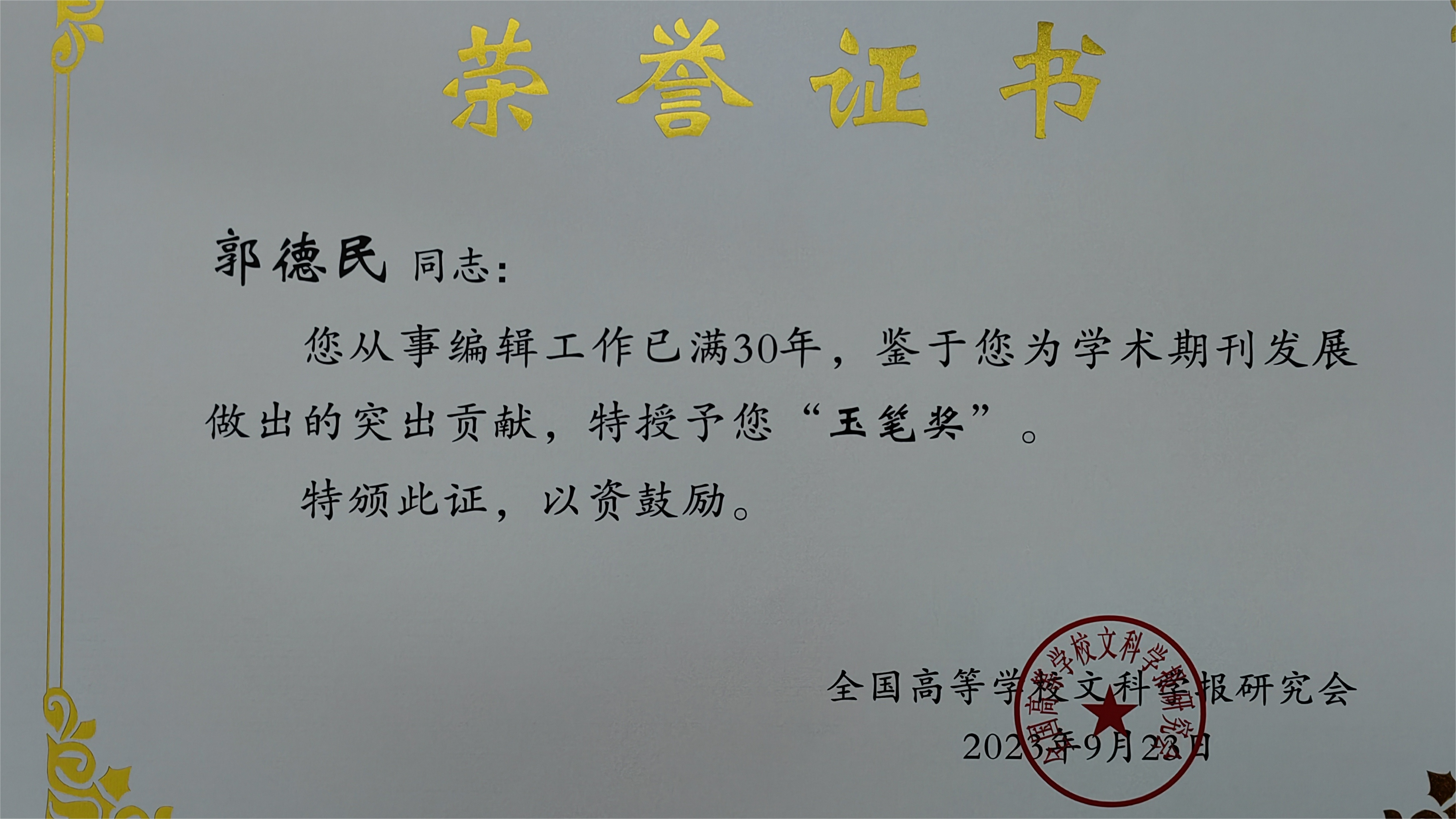 这些荣誉的获得展示了学报编辑部的办刊水平和编辑的业务能力,更展现了学报编辑部争优创先、奋发向上的精神风貌。