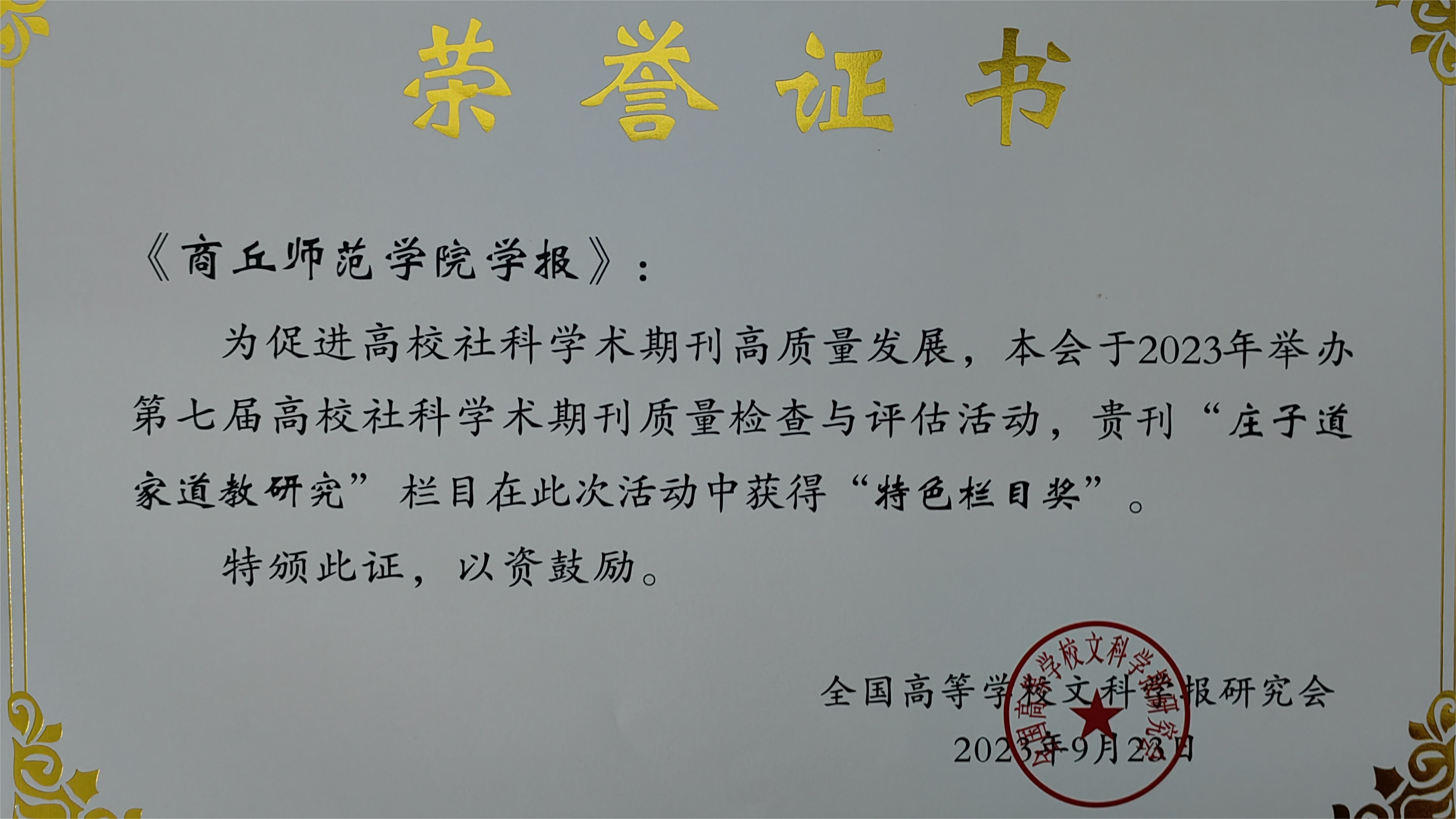 会上,第七届高校社科学术期刊质量检查与评估结果予以公布,诸侯快讯官网学报“庄子·道家·道教研究”栏目获得“特色栏目奖”,编辑部郭德民同志获得“玉笔奖”。
