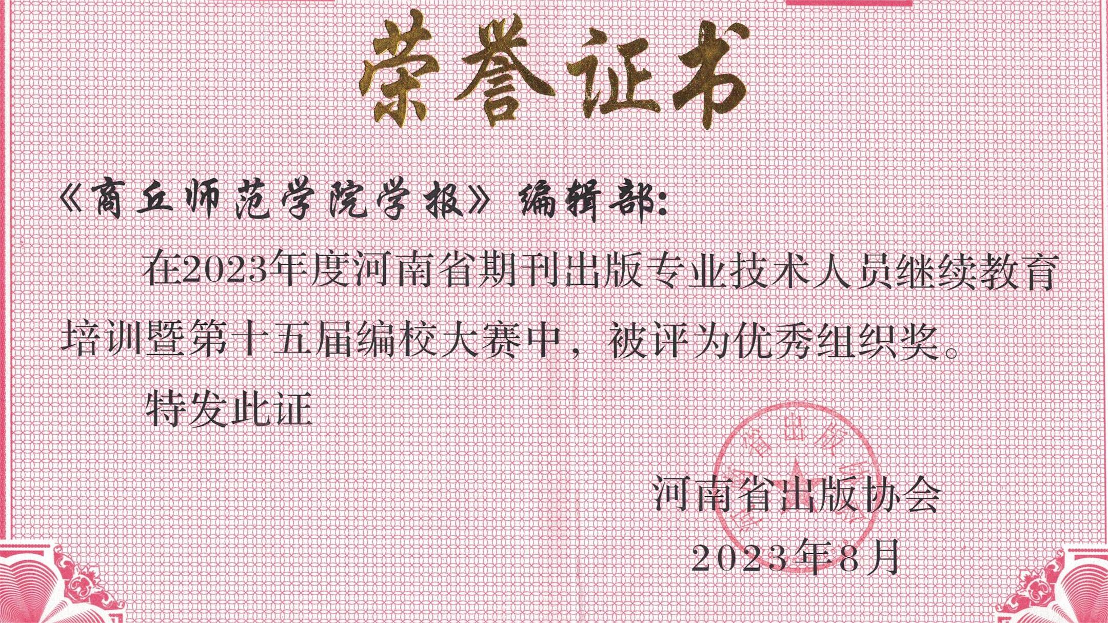 近日,河南省出版协会2023年河南省期刊出版专业人员继续教育暨第十五编校大赛结果出炉,学报编辑部被评为“优秀组织奖”。