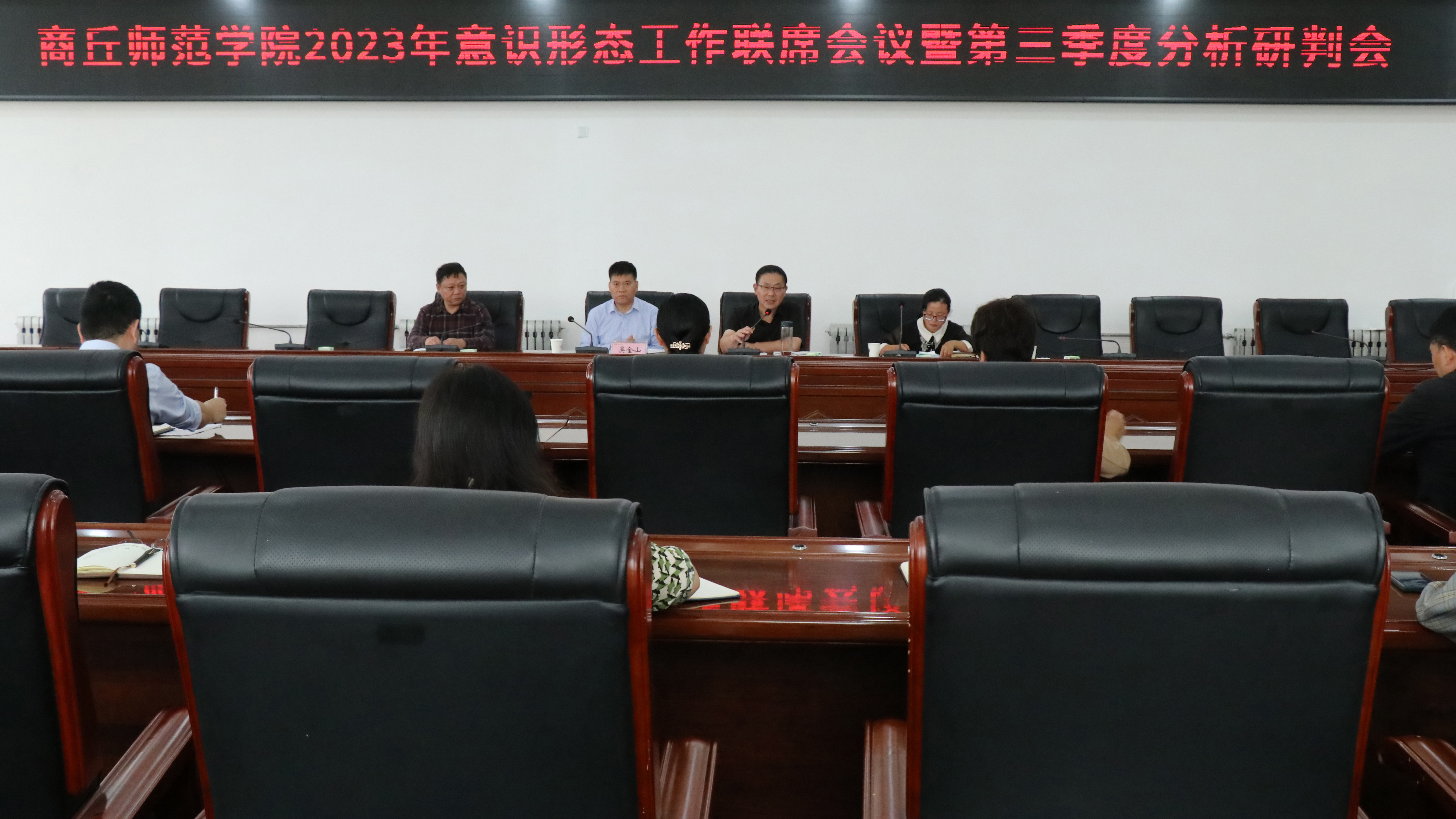 党委宣传部有关负责同志通报了第三季度学校舆情情况及各基层党委、党总支意识形态研判报告报送及研判情况,数学与统计学院、信息技术学院、测绘与规划学院党委负责同志作交流发言。