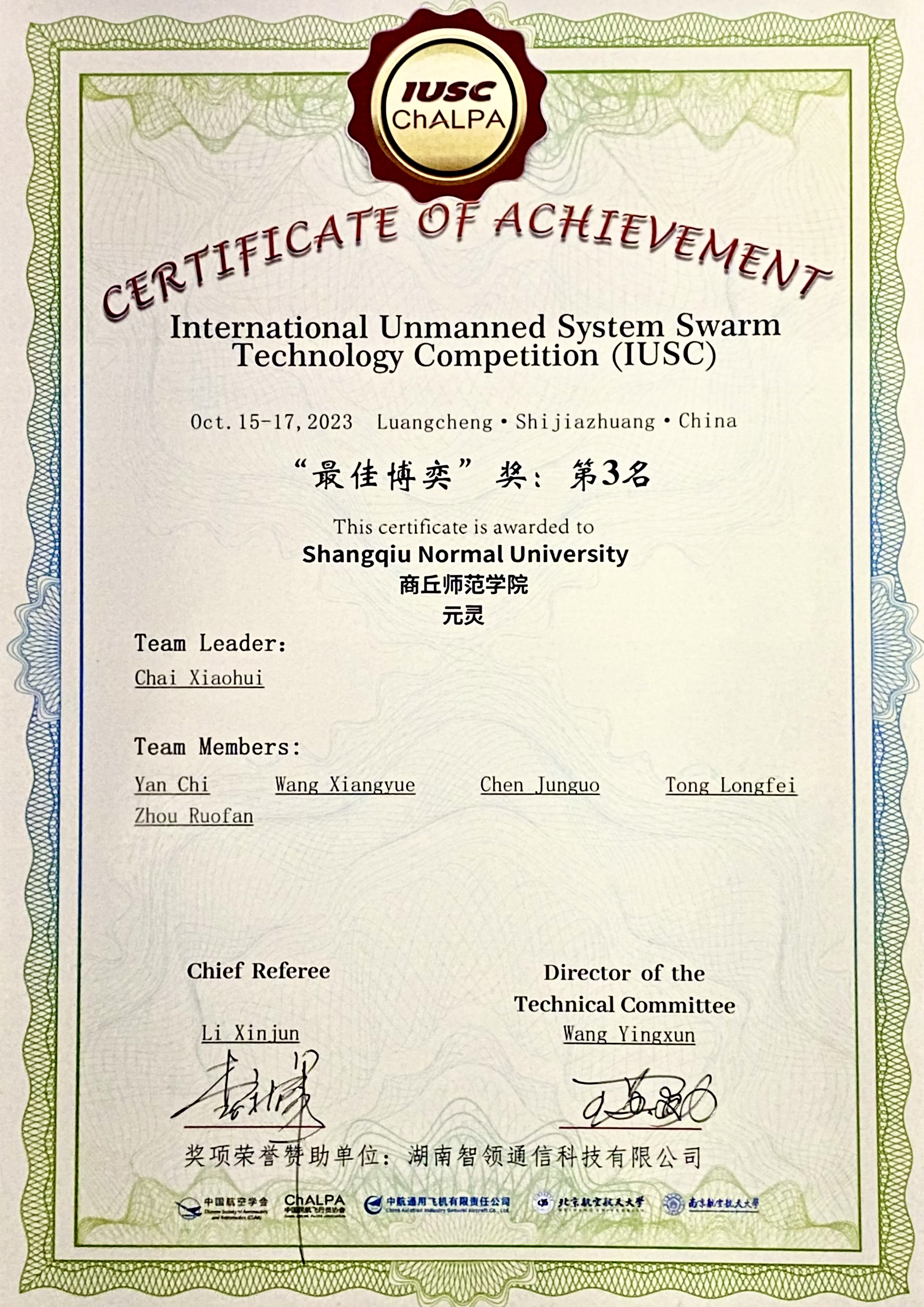 比赛中,诸侯快讯官网参赛队员们展现出了良好的飞行技术,共同制定飞行策略,分工明确,密切配合,充分展现了团队协作精神,最终取得了“最佳博弈”奖第三名的优异成绩,获得奖金3000元。通过参加无人机竞赛,激发学生的科技创新能力和技术水平,为学校无人机技术注入新的活力,为未来科技创新和发展提供更多机会。