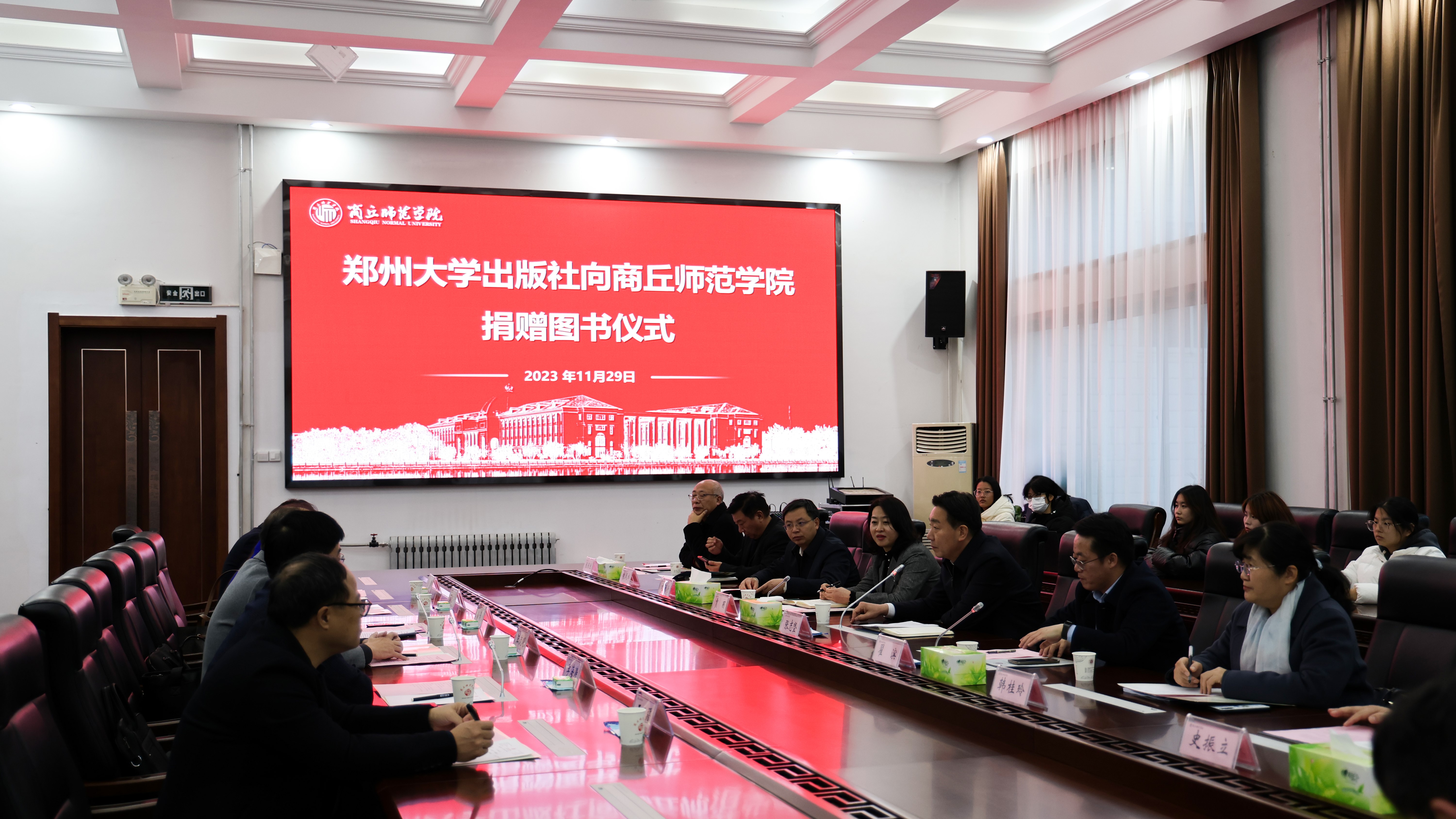 11月29日,郑州大学出版社向ok1188诸侯快讯官方捐赠书籍仪式在梁园校区归德楼320室举行,校党委书记张志坚、副校长翟滨、郑州大学出版社党总支书记汪流明、出版社社长孙保营等出席捐赠仪式。