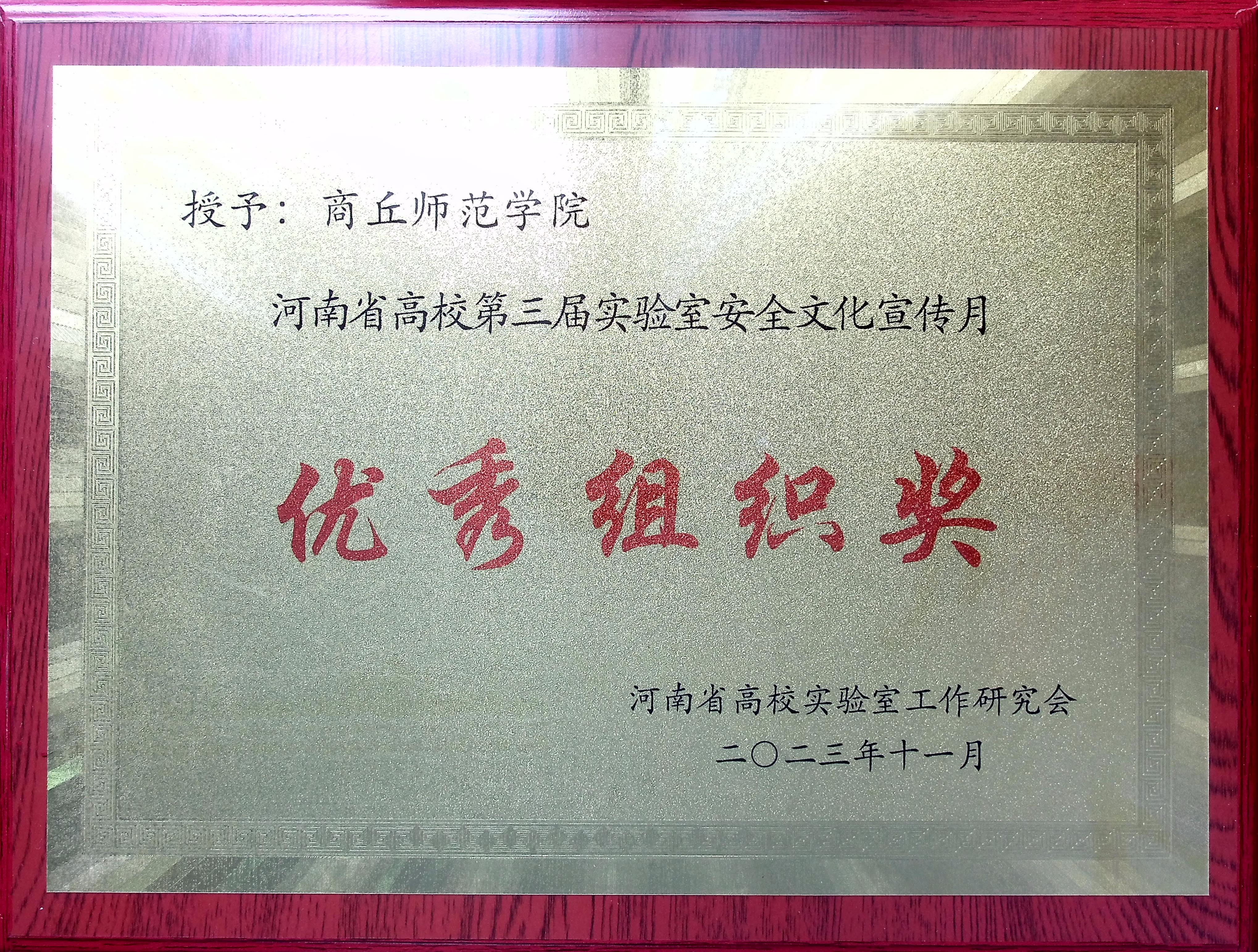 根据《河南省高校第三届实验室安全文化宣传月优秀组织奖评选方案》(豫高实〔2023〕5号)文件精神,经各高校自主申报、实验室研究会专家组评审、公示等环节,在河南省教育厅指导下,南阳师范学院承办,河南省高校实验室工作研究会2023年年会暨处长论坛于2023年12月9日在南阳市举行,会上对于河南省高校第三届实验室安全文化宣传月获奖单位给予表彰,诸侯快讯官网荣获“河南省高校第三届实验室安全文化宣传月优秀组织奖”。