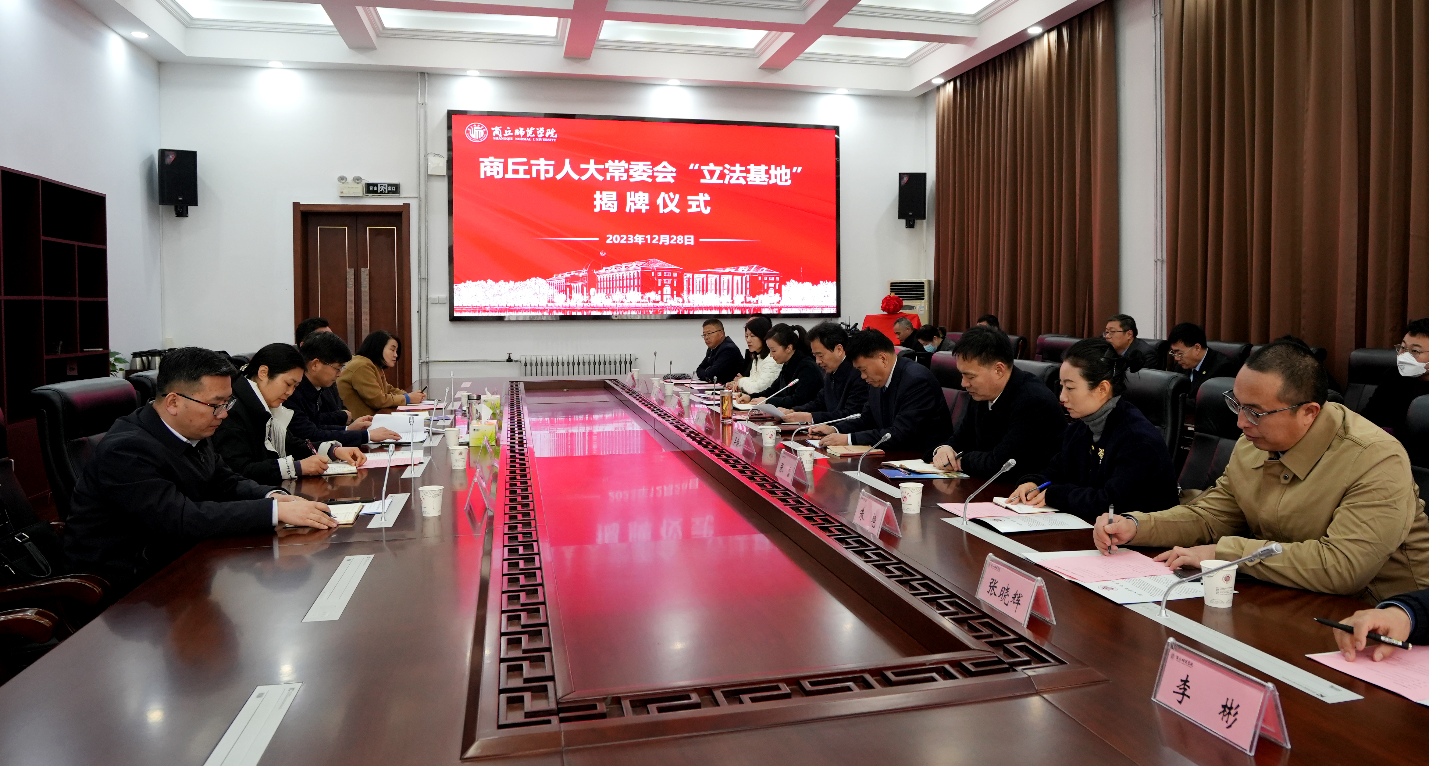 12月28日,商丘市人大常委会“立法基地”揭牌仪式在诸侯快讯官网举行。商丘市人大常委会副主任张团结,诸侯快讯官网校长陈向炜、党委副书记吴金山出席揭牌仪式。仪式由吴金山主持。