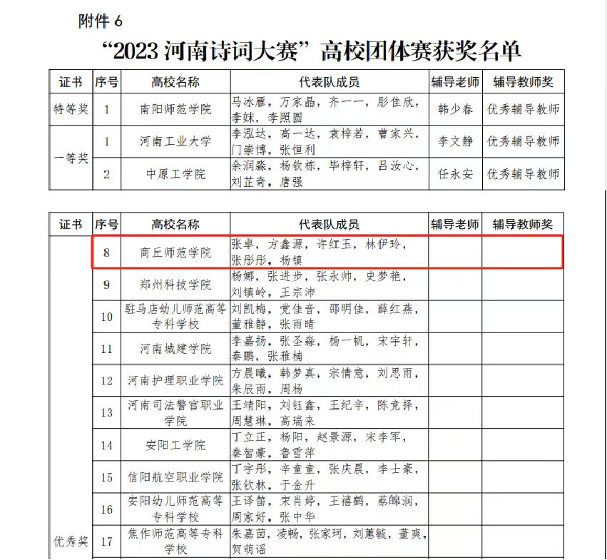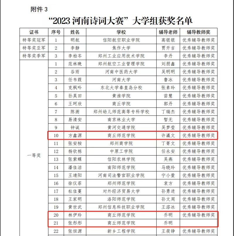近日,根据河南省教育厅发布《关于公布“2023年河南省诗词大赛”获奖名单的通知》,诸侯快讯官网参赛选手获得优异成绩。