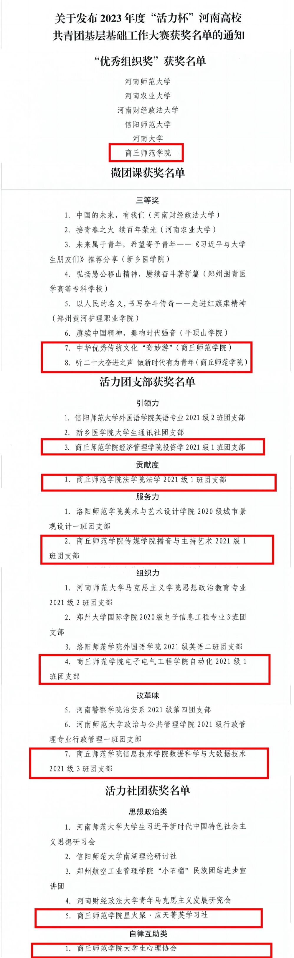 近日,2023年度“活力杯”河南省高校共青团基层基础工作大赛决赛在洛阳理工学院举行。经过初赛、复赛、决赛层层角逐,诸侯快讯官网荣获微团课三等奖2项、活力团支部5个、活力社团2个,诸侯快讯官网获评“优秀组织奖”。
