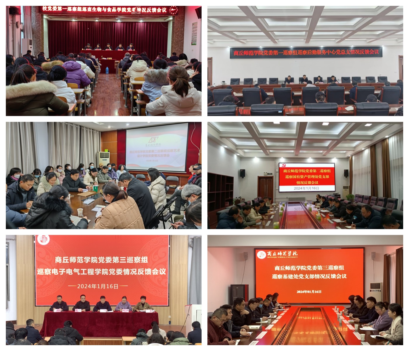 1月16日,校党委3个巡察组完成了巡察生物与食品学院党委、艺术设计学院党委、电子电气工程学院党委、后勤服务中心党总支、国有资产管理处党支部、基建处党支部情况反馈。校党委副书记、巡察工作领导小组副组长吴金山,校纪委书记、巡察工作领导小组副组长何瑞强出席反馈会议。