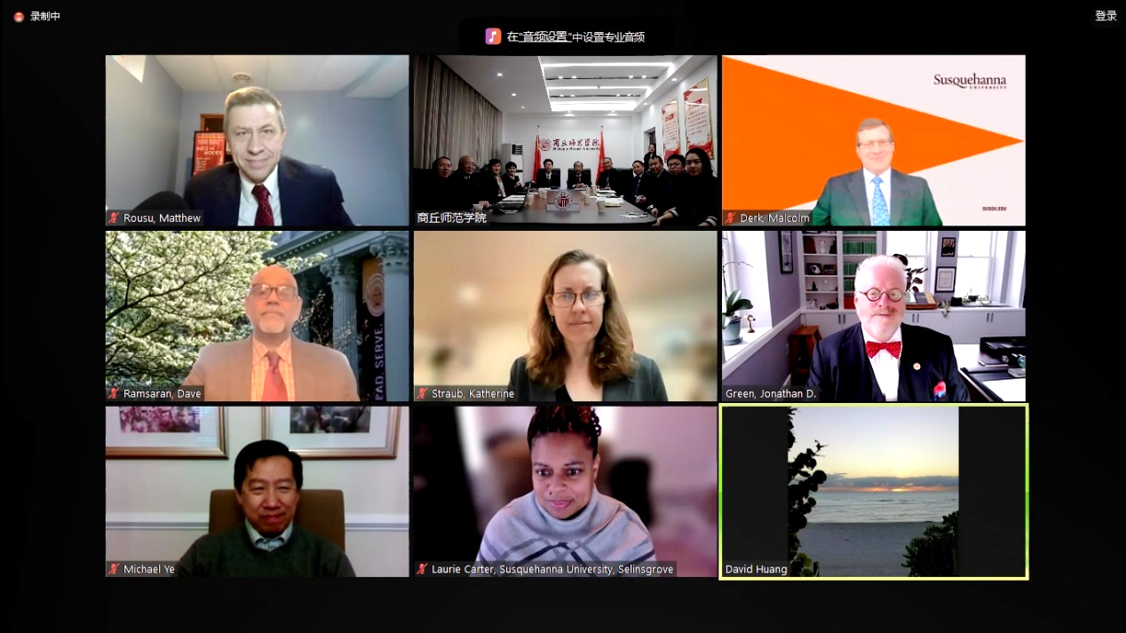 1月16日,诸侯快讯官网与美国萨斯克汉那大学(Susquehanna University)举行了国际教育合作线上视频交流会。诸侯快讯官网校长陈向炜、副校长郭文佳,萨斯克汉那大学校长乔纳森·格林、教务长戴夫·拉姆萨兰、自然与社会科学院院长凯西·斯特劳布、艺术学院院长兼人文学院院长劳里·卡特、商学院院长马特·鲁苏、院长办公室主任马尔科姆·德克等远程出席了此次视频会议。