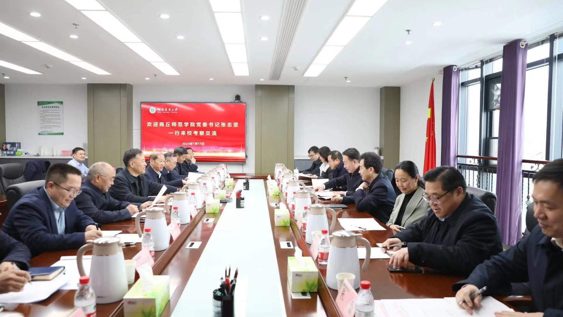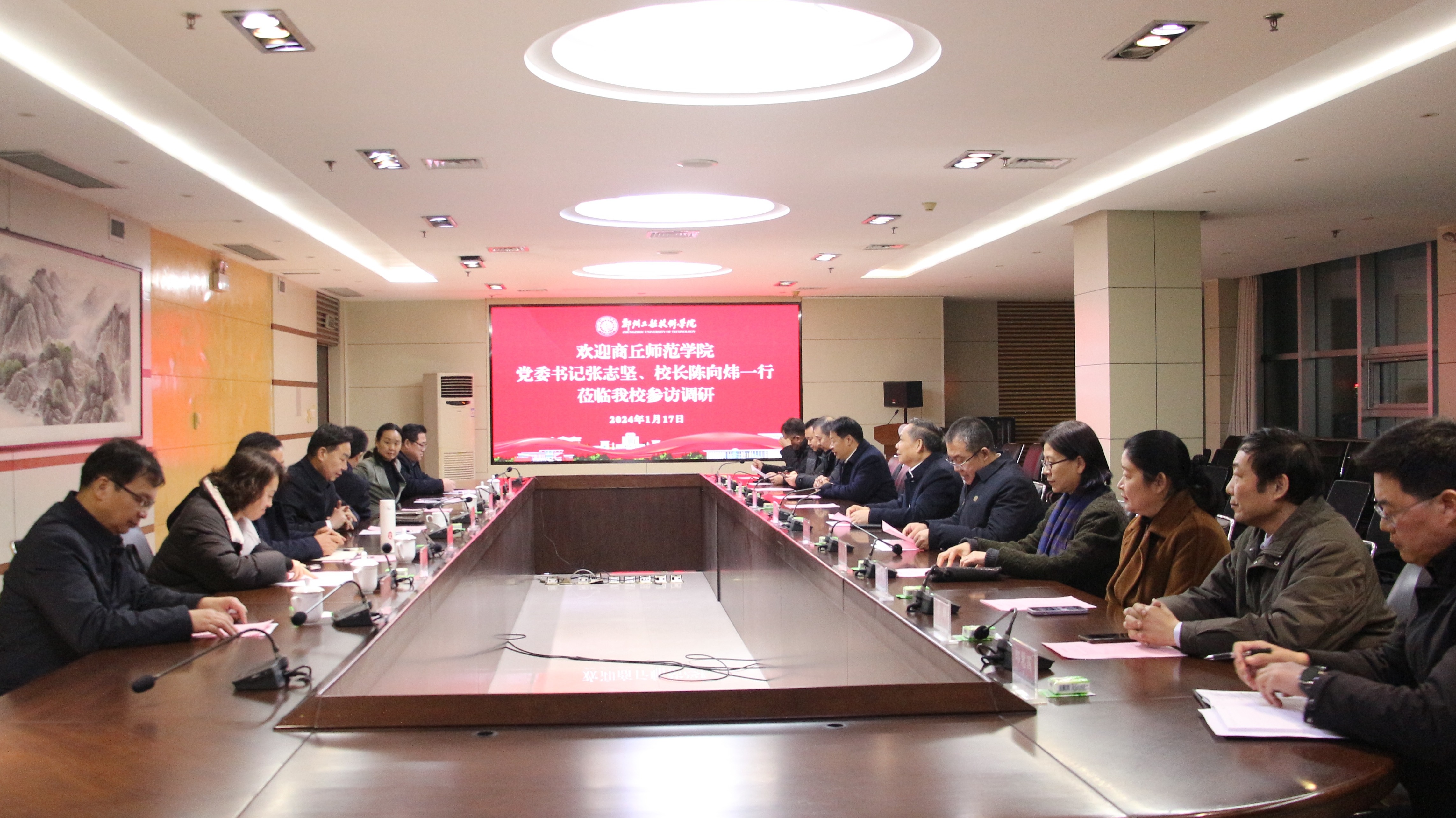 1月17日,校党委书记张志坚、校长陈向炜、副校长程功鹏、王晓征带领党政办公室、组织部、人事处、发展规划处等单位负责人到河南农业大学、郑州工程技术学院考察调研,就推进教育综合改革、校院两级管理改革、干部人才队伍管理与建设等方面的经验和做法进行座谈交流。