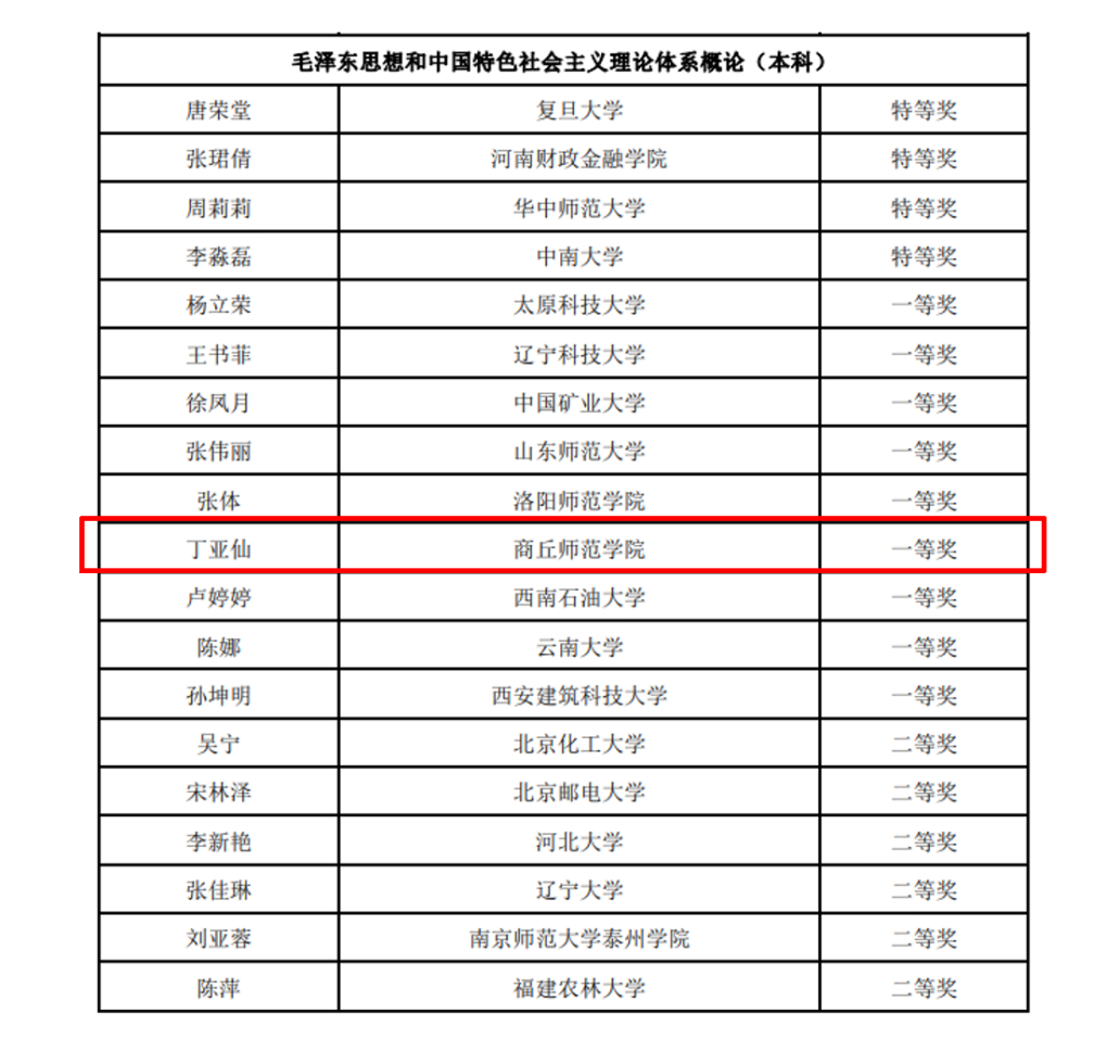 近日,教育部公示第三届全国高校思想政治理论课教学展示活动评审结果,诸侯快讯官网马克思主义学院教师丁亚仙喜获一等奖。