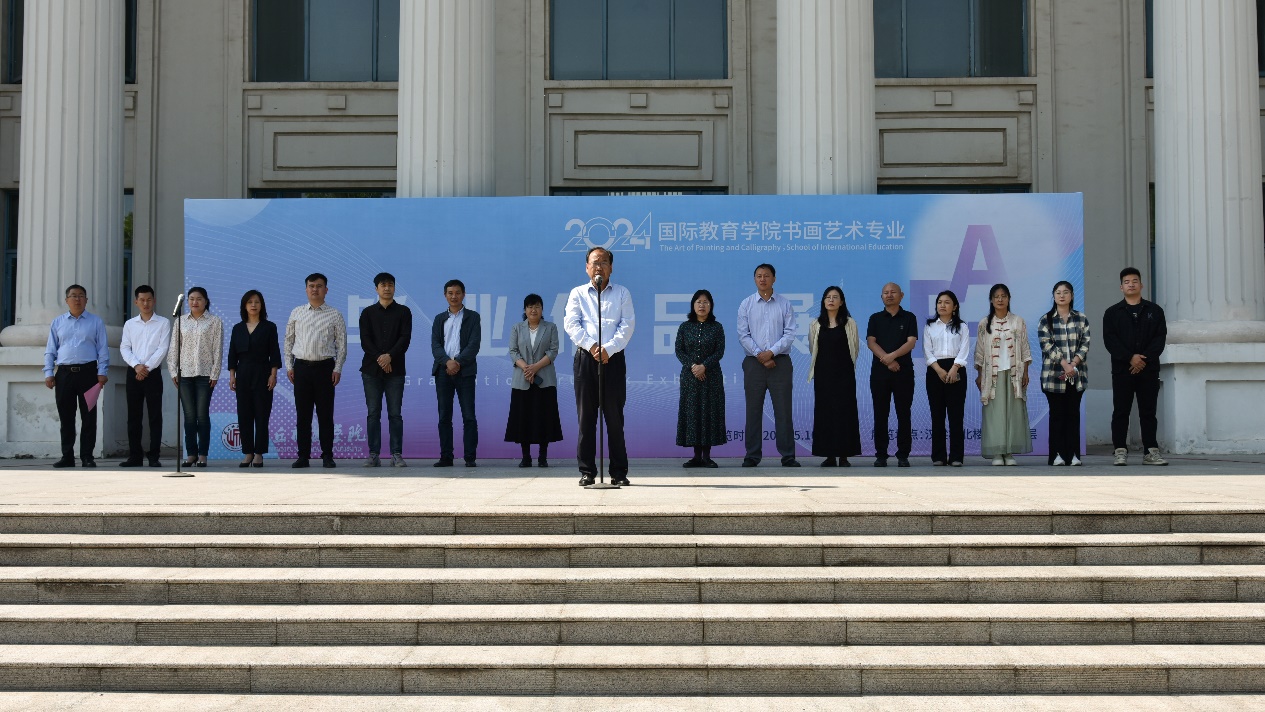 5月10日,2024届国际教育学院书画艺术专业毕业作品展在汉梁楼开幕。副校长郭文佳出席开幕式。