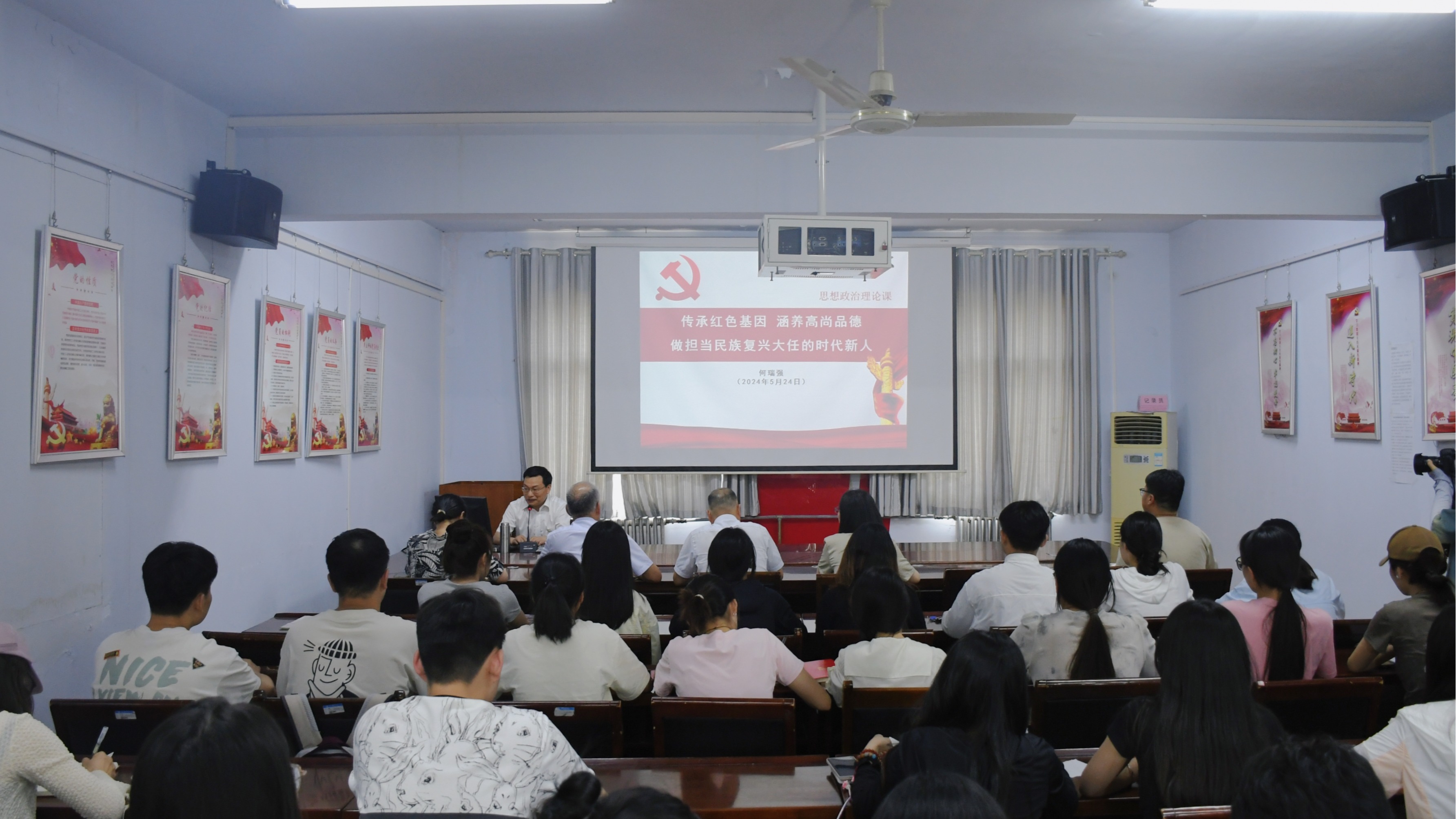 5月24日,校纪委书记、监察专员何瑞强在美术学院7号楼三楼会议室,以《传承红色基因,涵养高尚品德,做担当民族复兴大任的时代新人》为题,为美术学院和艺术设计学院学生代表讲授思政课。何瑞强主要围绕崇德、明德、进德三个方面,结合习近平总书记有关立德树人的重要论述,通过分享先进典型的生动事迹,教育引导青年学生在学习党的历史中,深刻体悟对党忠诚的大德、造福人民的公德和严于律己的品德,按照习近平总书记提出的“六个下功夫”要求,不断增强“四个自信”的自觉性和坚定性,锤炼热爱祖国的赤诚之心,涵养宽广的胸怀和高尚的情操,在践行社会主义核心价值观的学习实践中不断提升自己的能力,做担当民族复兴大任的时代新人。