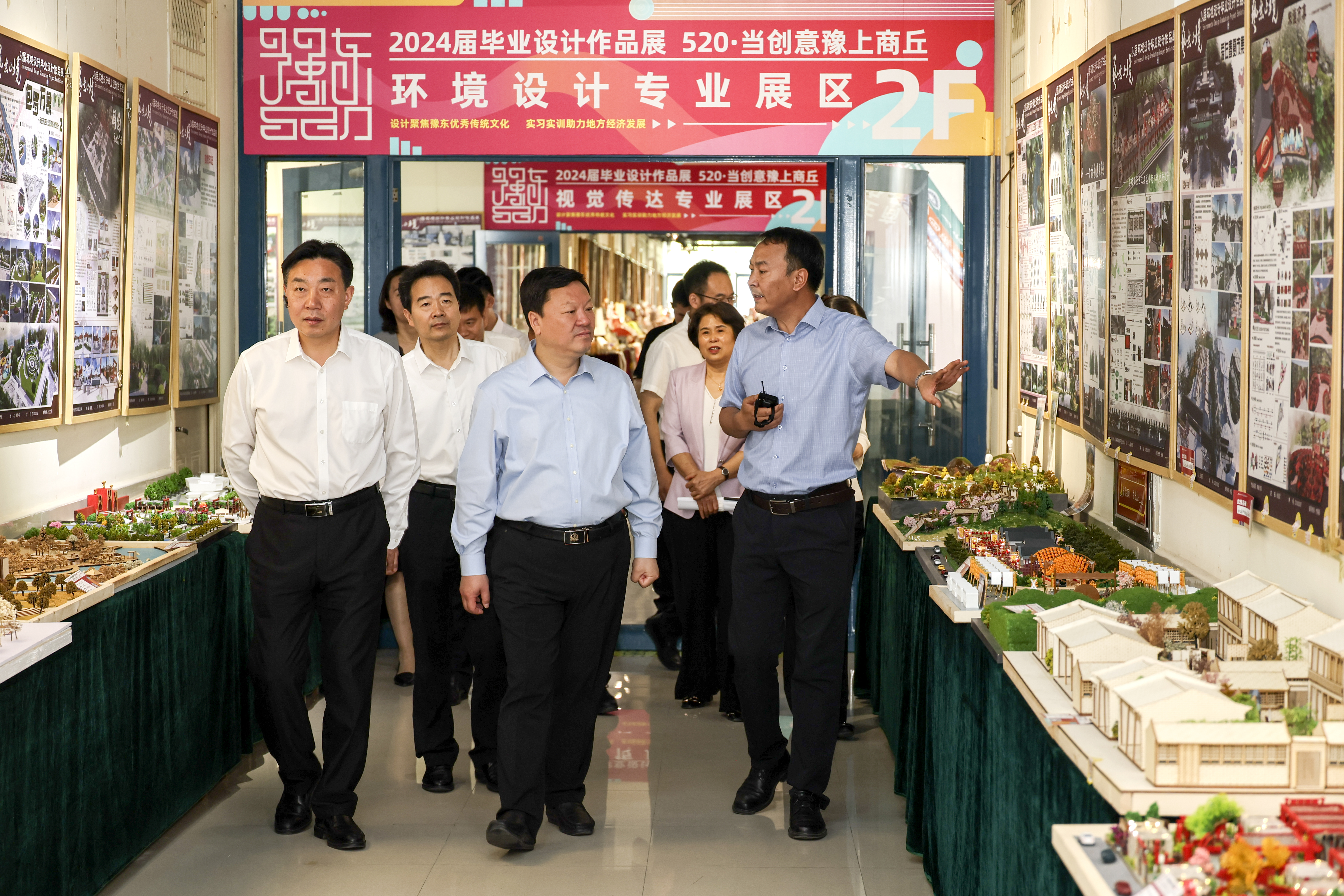 李湘豫一行深入生物与食品学院、建筑工程学院、艺术设计学院、人文学院、师范生职业技能训练中心、艺术中心、信息技术学院、商丘乡村建设学院、经济管理学院、美术学院等,实地了解学科建设、教研教学、实验实训、校企合作等情况。随后,参观了科研成果和学生毕业设计作品展。李湘豫对ok1188诸侯快讯官方着力实现科研成果转化,推动校市深度融合协同发展表示赞许,对学校近年来的发展给予高度评价。