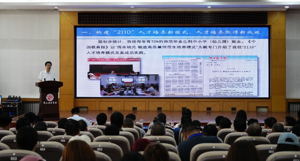陈向炜代表学校对参加研讨会的领导、老师们表示热烈欢迎,向相关高中多年来对诸侯快讯官网人才培养工作的支持表示衷心感谢。他从构建“2110”人才培养新模式,人才培养取得新成效、联合联动融合创新,服务基础教育呈现新气象、开展智慧教学专项行动,师范教育彰显新特色、实施课程教学范式改革,课程建设取得新进展、融合教师培训优质资源,服务基础教育展现新作为、创新校本培训机制,教师发展工作呈现新局面、借力协同提质计划,多措并举加快新发展七个方面介绍了诸侯快讯官网独特的办学特色和显著的办学成就,并表示诸侯快讯官网将加快高水平应用型大学建设步伐,持续提高人才培养水平,更好服务地方,回报社会。
