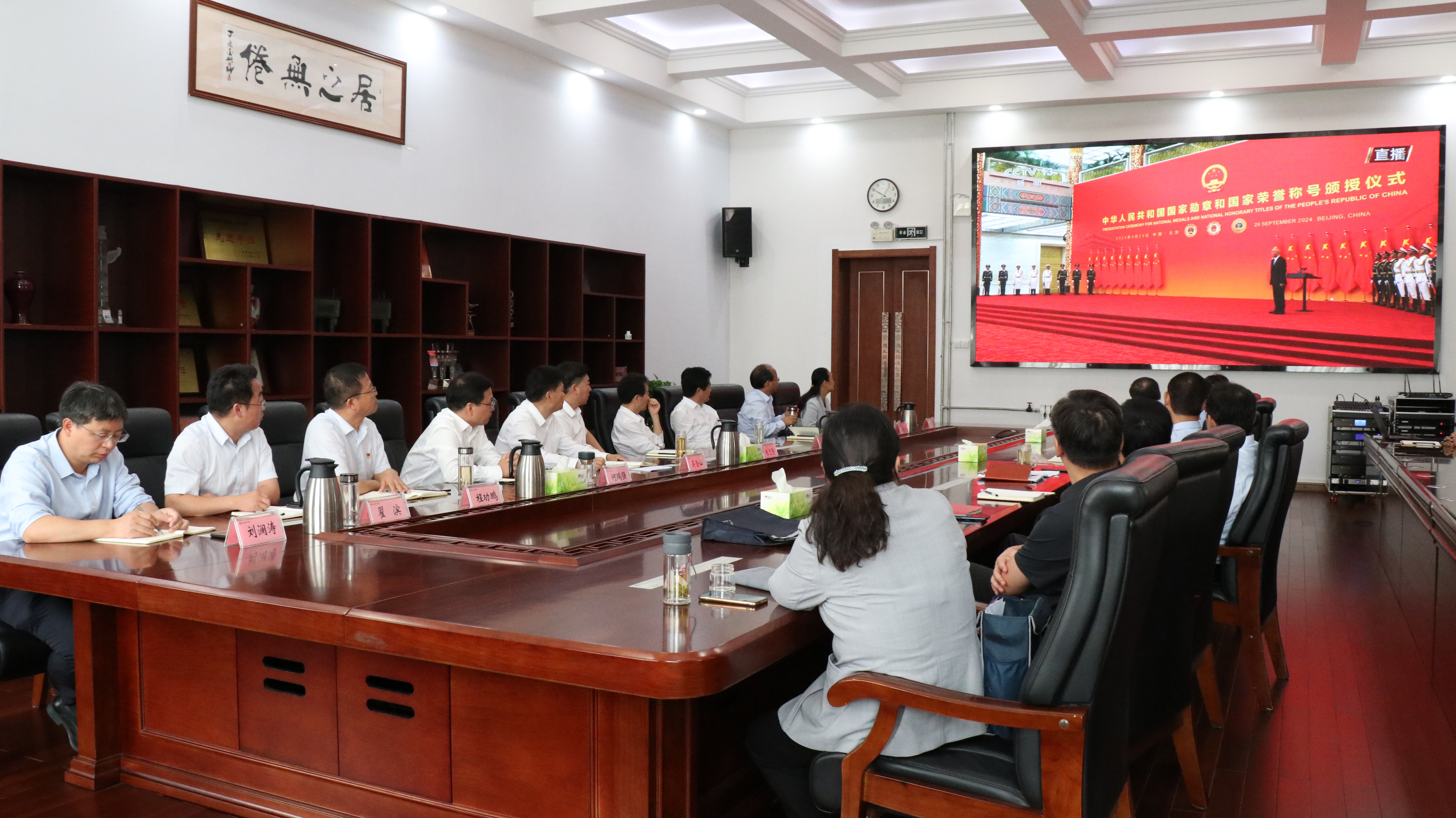 为弘扬爱国主义精神,对标先进,学习榜样,持续深入学习贯彻党的二十届三中全会精神和习近平总书记关于教育的重要论述,9月29日,校党委理论学习中心组全体成员在归德楼320会议室集中收看国家勋章和国家荣誉称号颁授仪式。