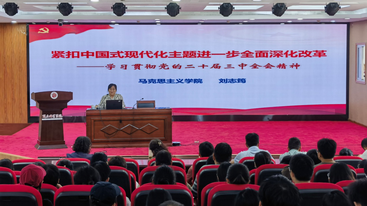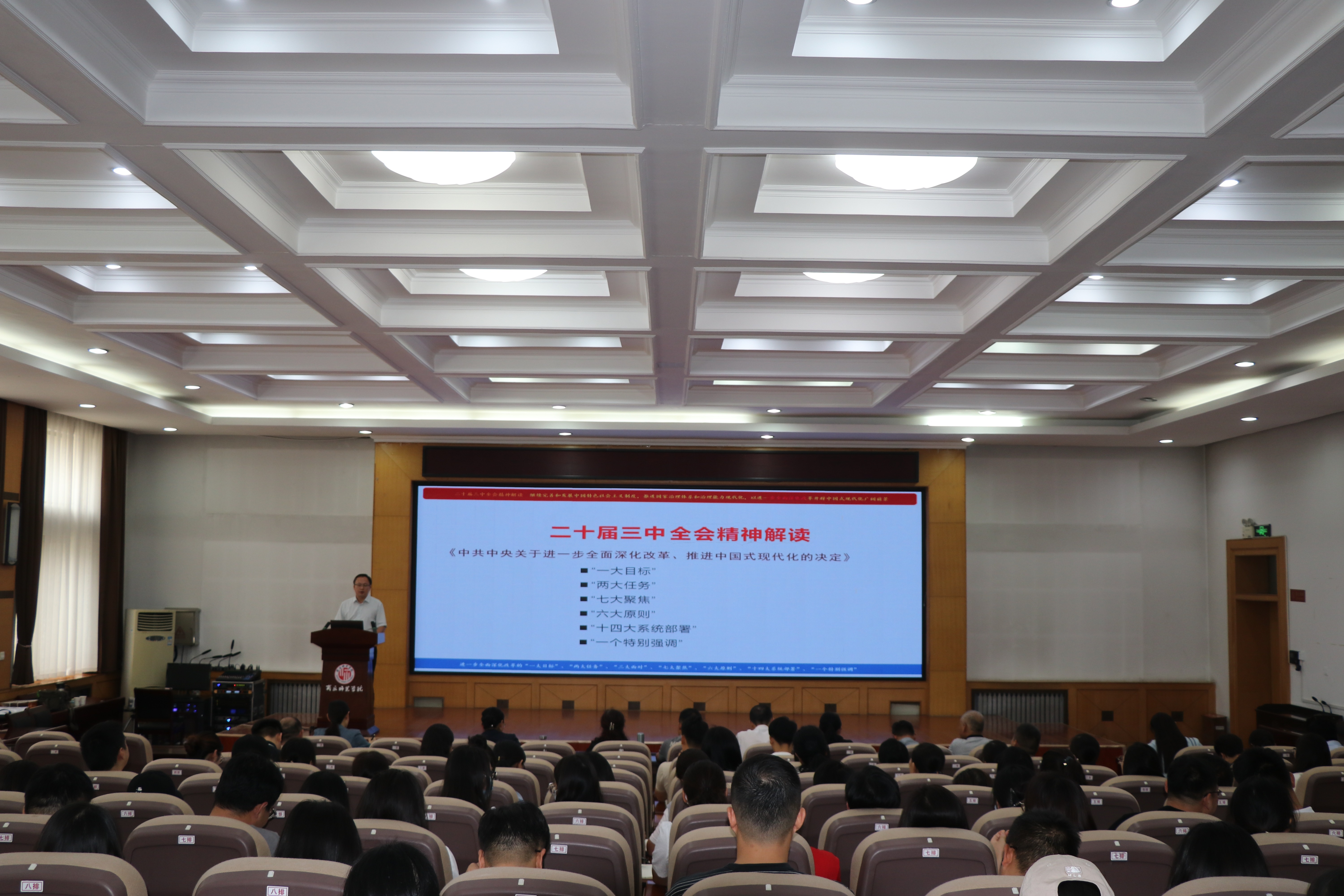 9月29日,副校长王晓征以《学习贯彻党的二十届三中全会精神在进一步全面深化改革、推进中国式现代化中担当作为》为题,为机关党委、离退休职工管理处党委科级及以下党员干部宣讲党的二十届三中全会精神。